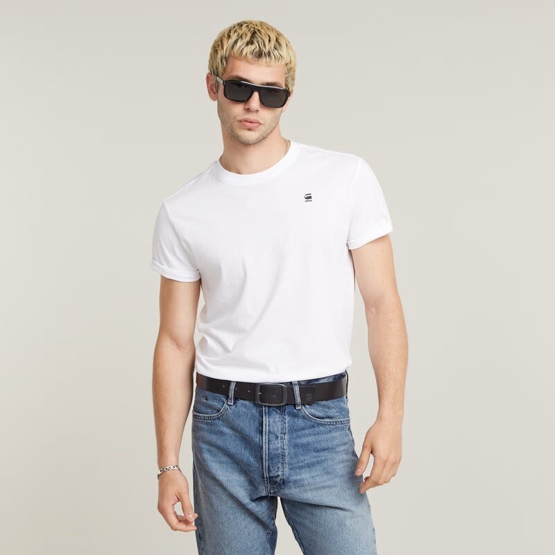 This Mett belt features a black colored metal buckle with a subtle GS RAW engraving. The full grain leather strap offers a debossed graphic at the end.
