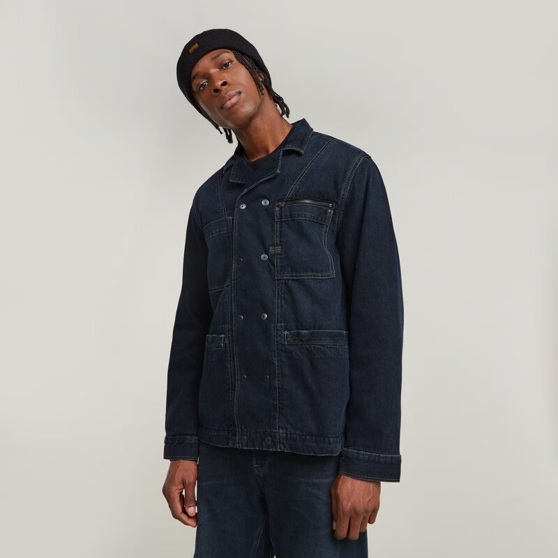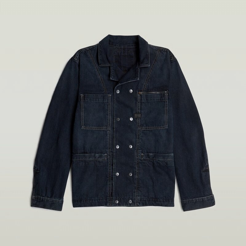 Blazer Correct offers a revere collar with a double row of snap buttons. One of the chest pockets shows a zipper closure. The pockets at the waist are finished with a welt and hidden snap button. Slits at the back add detail.