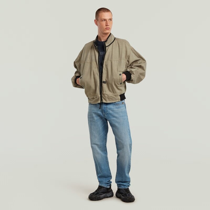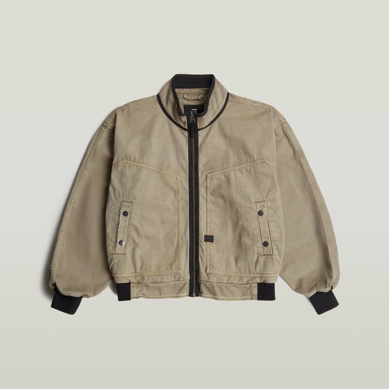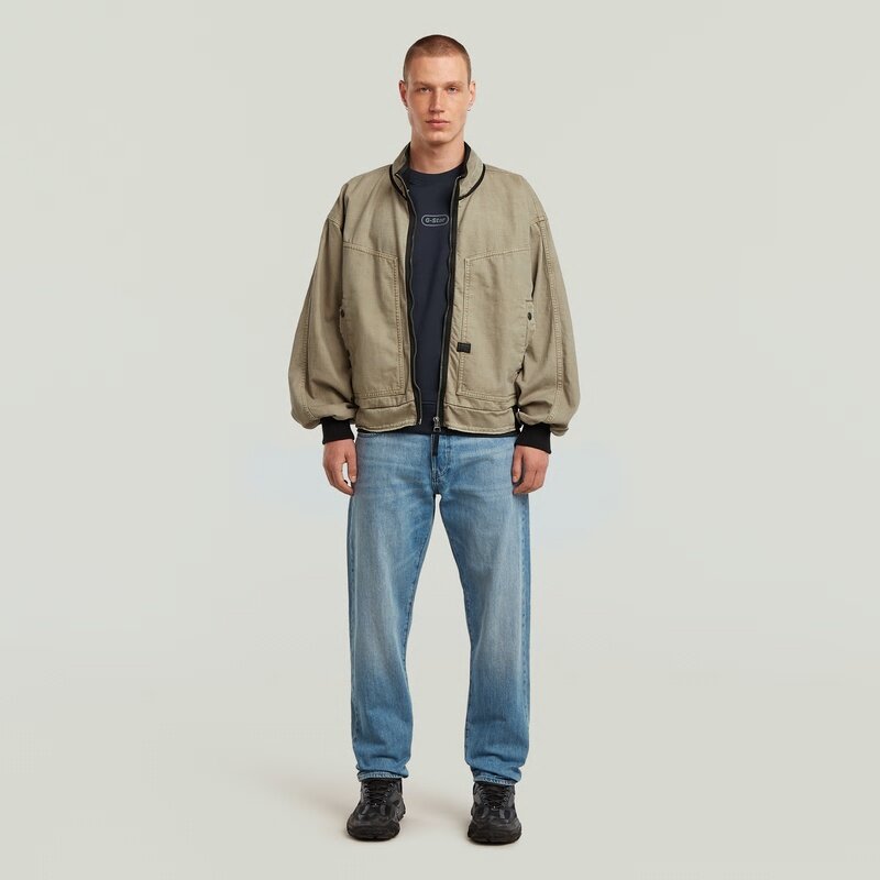 This denim bomber is cut in an oversized fit and offers a zipper closure, welt pockets with a double snap and ribbed finished edges. Also inside a pocket is created.