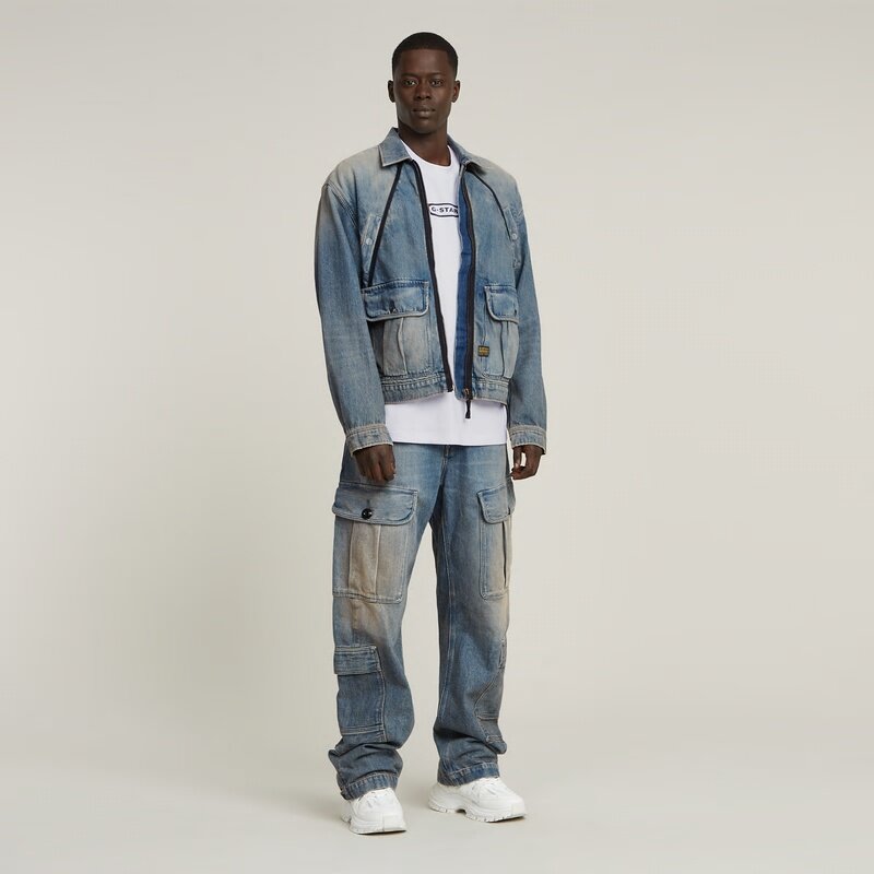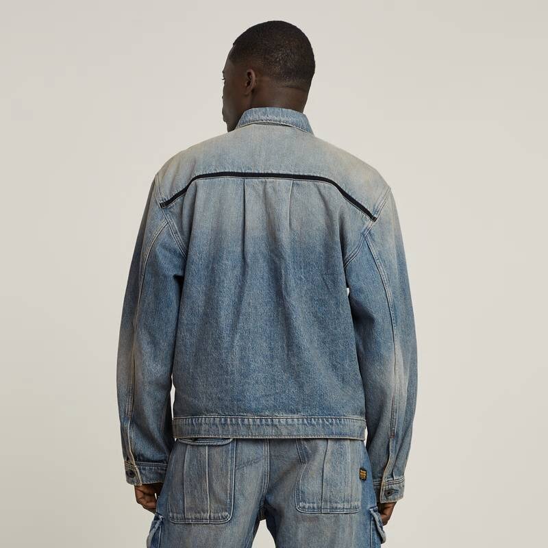 Denim coach jacket Zip offers flap pockets at the front with side entry pockets underneath. Welt pockets are added to the diagonal front seams. The shoulder panel at the back is also finished with a woven tape alike the front.