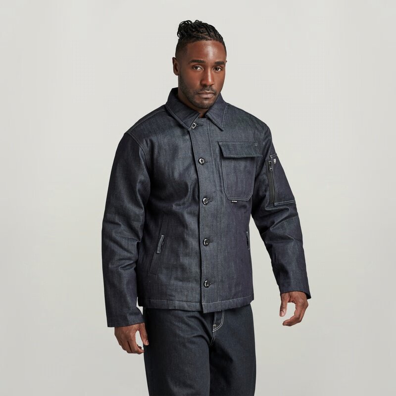Denim jacket Deck is padded with a soft filling. The concealed zipper and inner cuffs keep out the wind and add to a comfortable wear. One of the sleeves is designed with a side entry zipper pocket. This jacket shows a single chest pocket with a flap combined with welt pockets at the waist that offer a hidden snap closure. For ease, an inner pocket is added to this padded denim jacket.