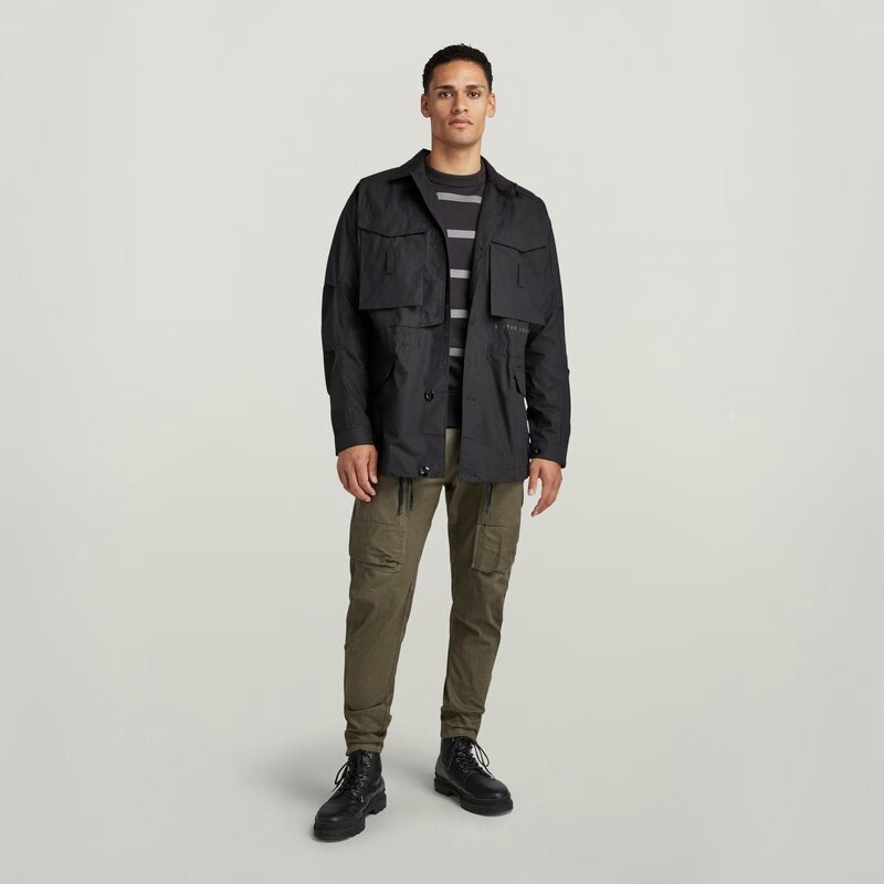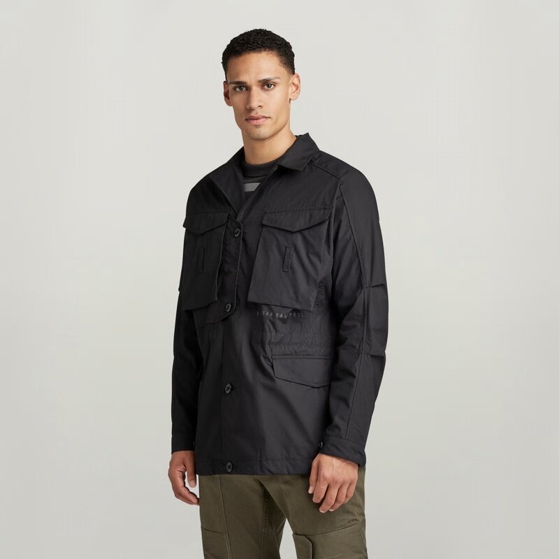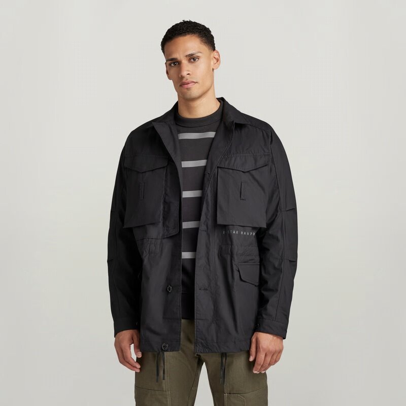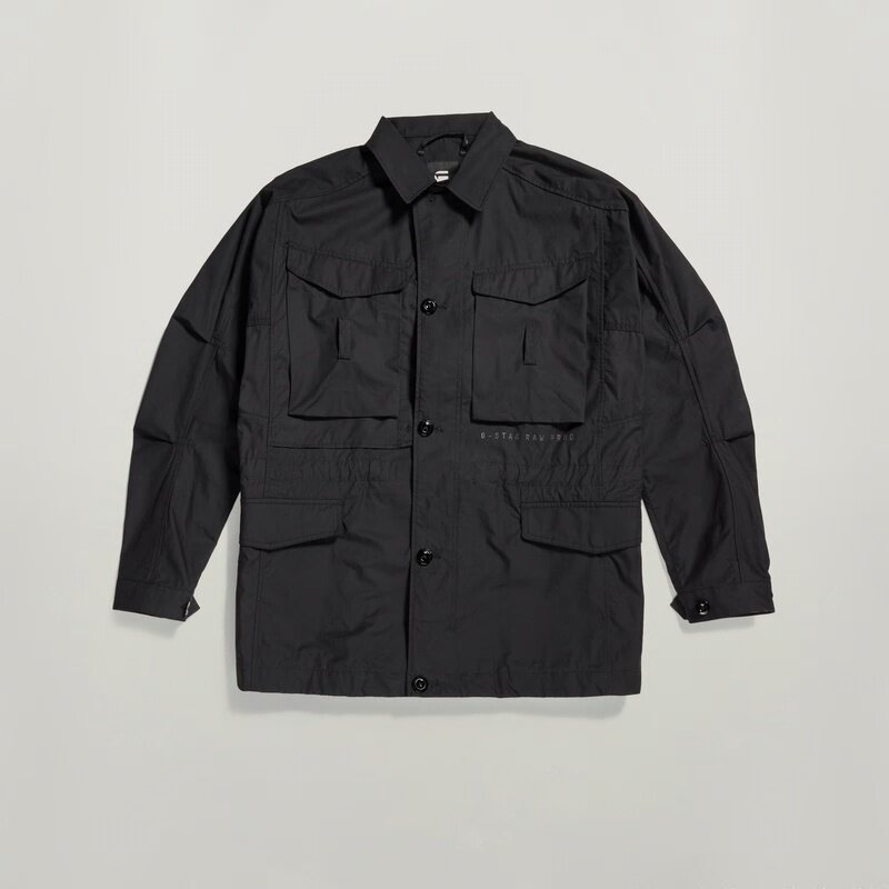Jacket Field is designed in a roomy fit with a button closed front. Flap pockets are placed at the chest and waist, offering a hidden snap button closure. Underneath one of the chest pockets, an angled pocket is added. The design of this field jacket shows an additional flap pocket at the upper back. Adjustability is created at the cuffs (additional button) and waist (drawcord at the inside).