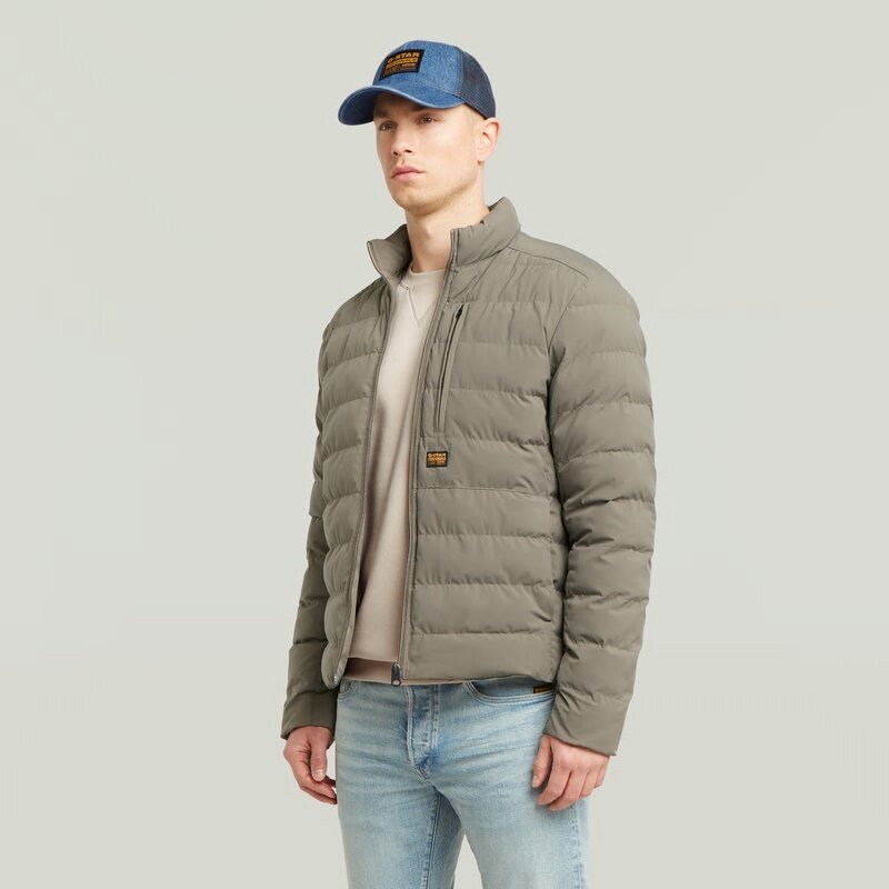 The Foundation Liner Jacket features a padded and quilted design with a stand-up collar.