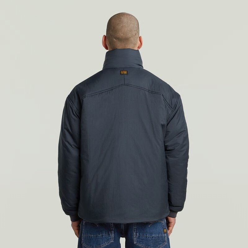 This lightweight jacket is crafted from a water repellent fabric. It features a padded design with a stand-up collar and zip closure for added comfort.