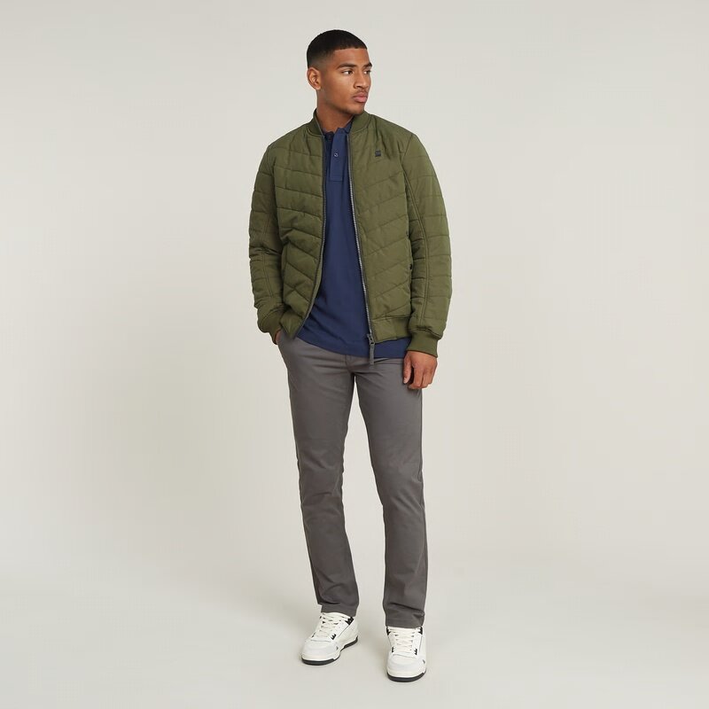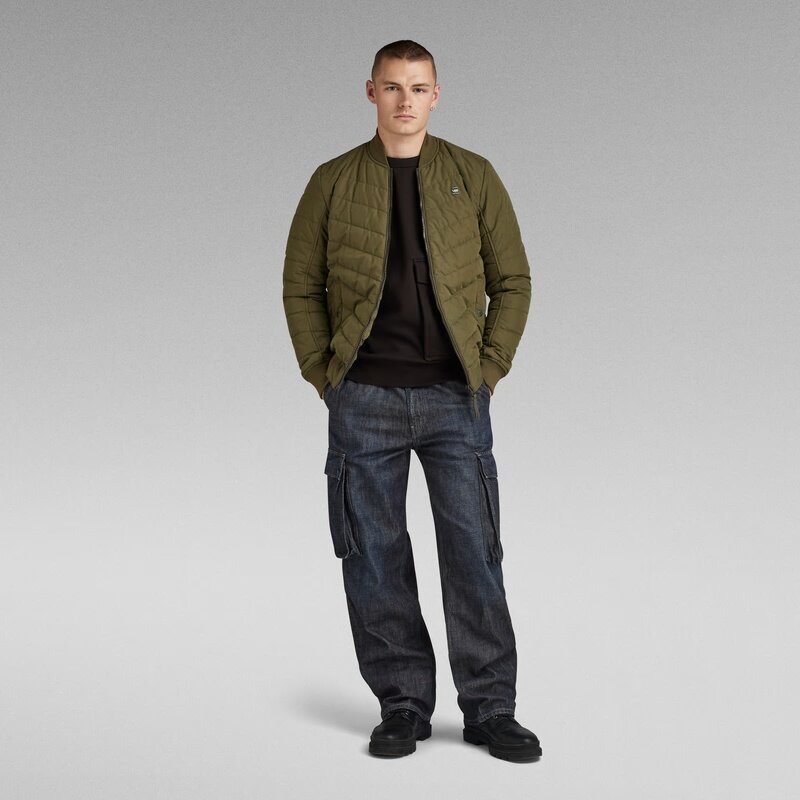The Padded bomber jacket is designed in a straight fit and offers a ribbed collar and a zipper closure. Broad welt pockets are created at the waist and show a snap button. This jacket is quilted in horizontal rows and fully lined. The ribbed cuffs and waistline add comfort to this bomber jacket.
