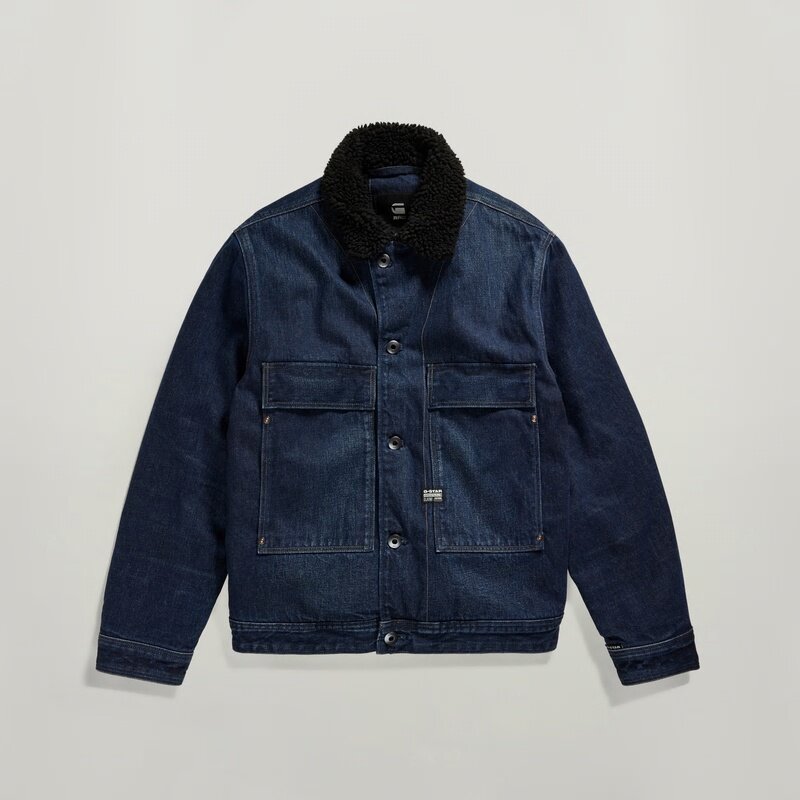 The design of this Utility jacket features flap pockets with additional side entry pockets. Hidden snap buttons ensure a firm closure. An inner pocket is added for ease. This denim jacket offers a soft touch teddy collar and a shank button closure.