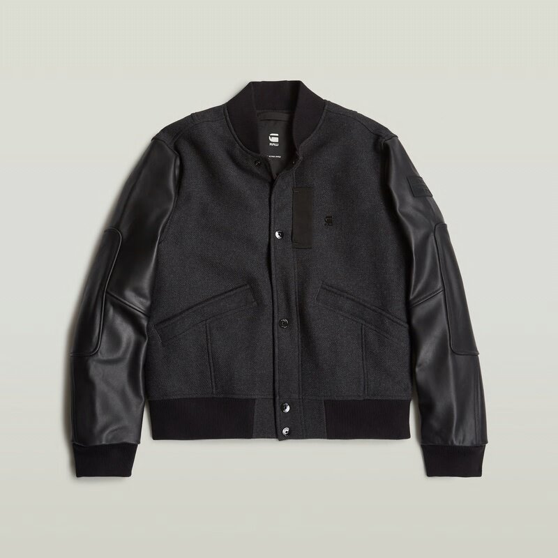 Varsity Jacket Wool Leather offers a lined style with a soft padding. The leather sleeves are finished with elbow patches and a ribbed cuff. Aside welt pockets with a concealed snap, this varsity jacket also offers an inner pocket.