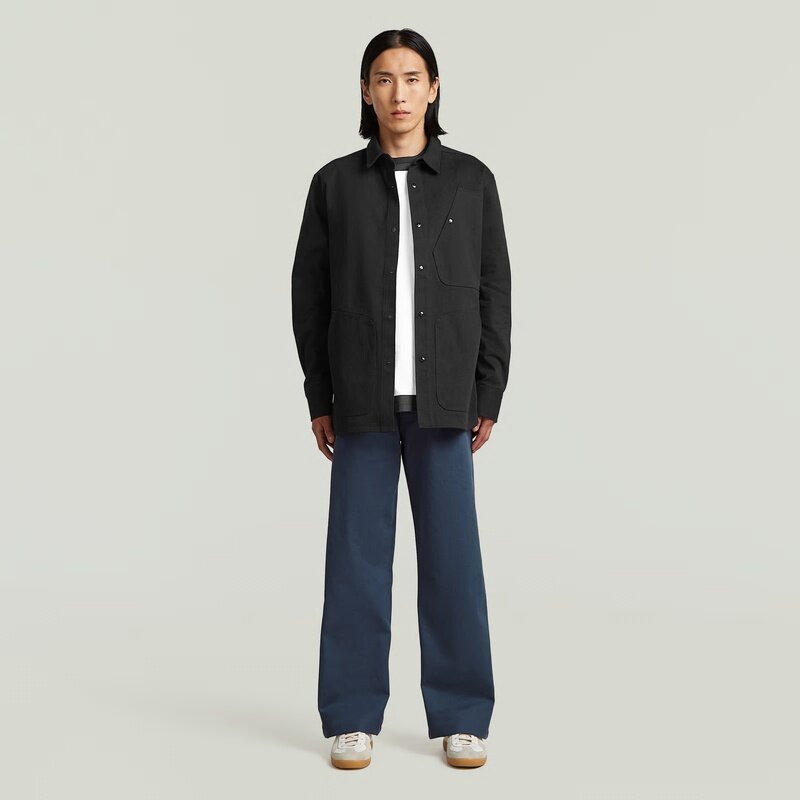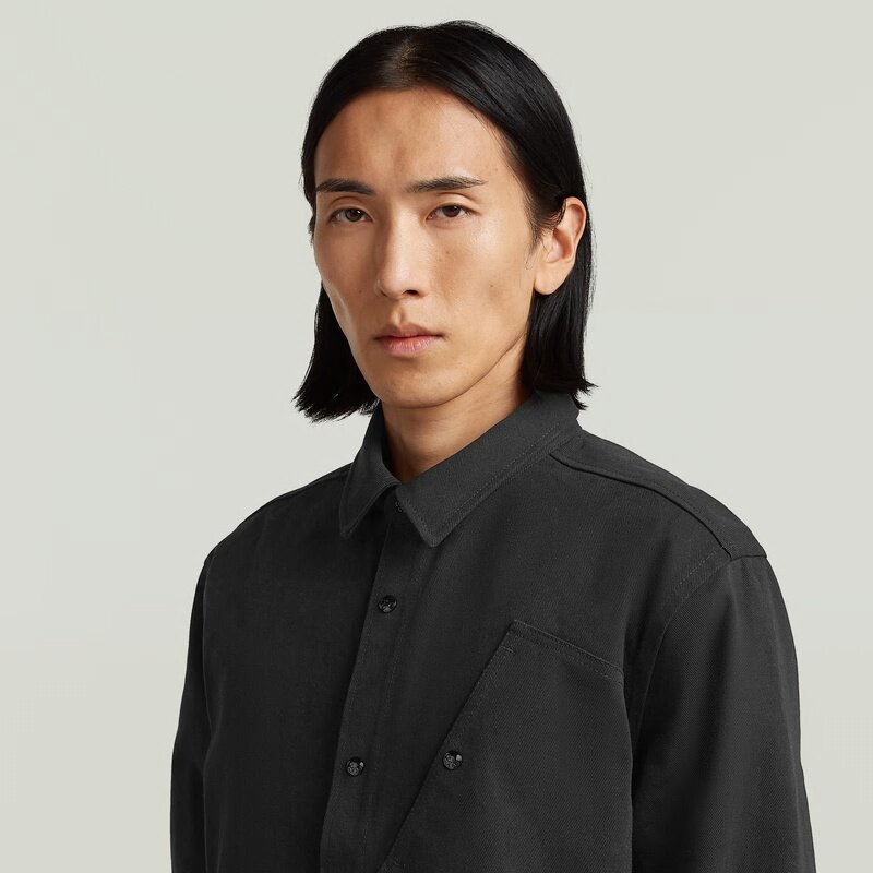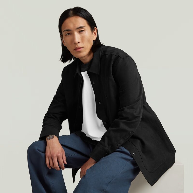 A reissue from our collaboration with Marc Newson, the Twill slim overshirt is a sleek wardrobe essential with a classic shirt collar and snap closure. Perfect for layering or on its own.
