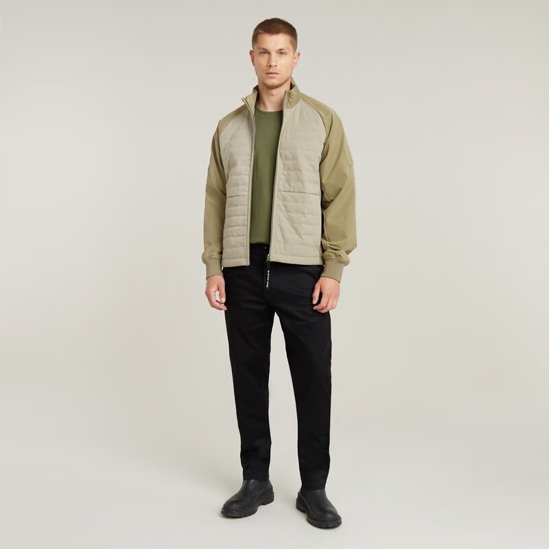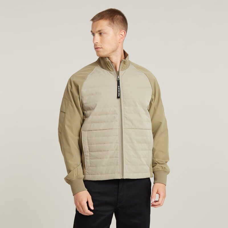 Overshirt Track offers a raised collar with a zipper closure. The body is filled with a soft padding. Pockets are caught in the front seams and offer a hidden snap button closure. Also at the sleeves, pockets are created. Pull the cord inside for a tighter edge.