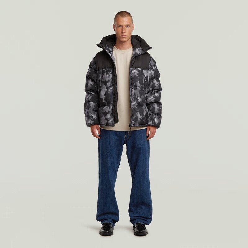 The Expedition Puffer offers an oversized fit with a hooded design, perfect for cold weather.