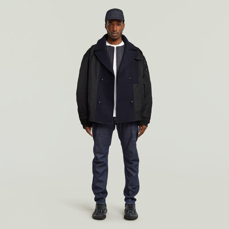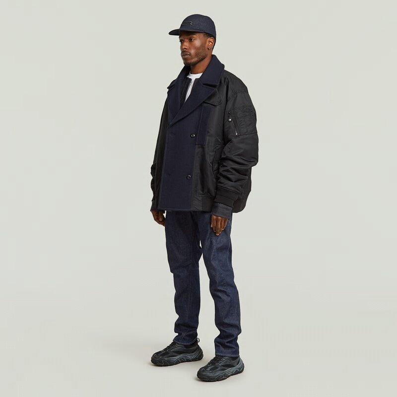 A modern staple, this peacoat redefines timeless outerwear with a contemporary edge. Crafted in an oversized silhouette, it features a sophisticated double-breasted. The padded construction provides warmth while adding a layer of structured elegance.