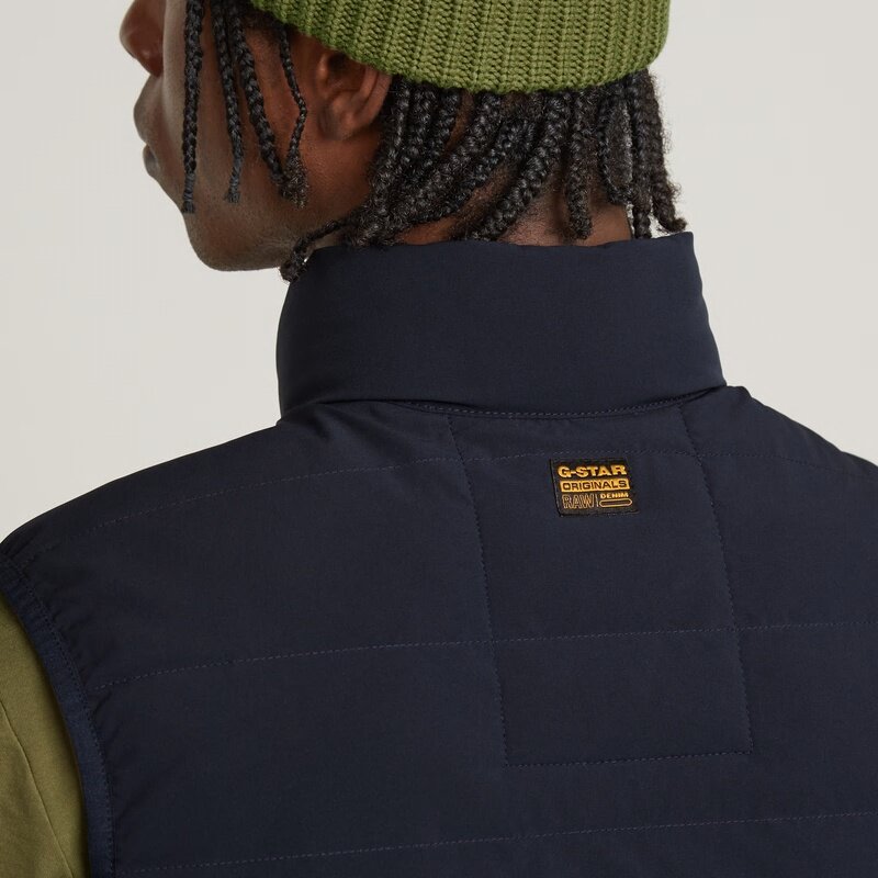 Liner vest Foundation is padded and stitched through horizontally. Pockets are created at the chest as well as the side.