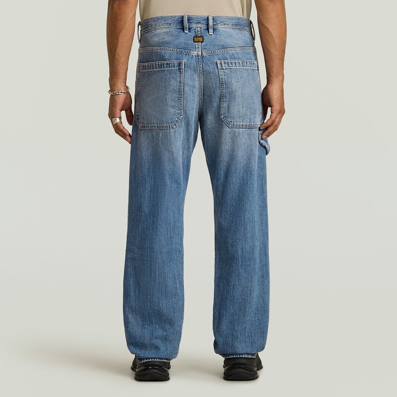 Jean Carpenter 3D Loose offers a relaxed look. The panels at the front legs show darts as well as pleats add more shape. The coin pocket is repositioned towards the inside, leaving only the rivets to show. Deep back pockets are placed slightly lower and offer a tool loop at one side.