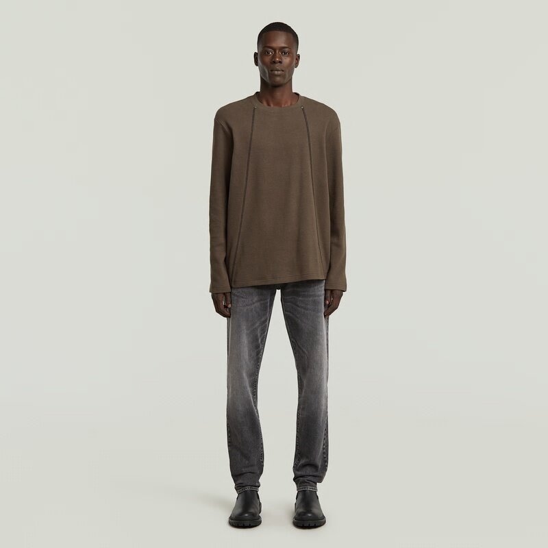 The Morry features a mid-waist fit with a tapered leg. Angled belt loops are added at the sides and the inset pocket. The opposite side includes a coin pocket with a small flap, offering a design detail.