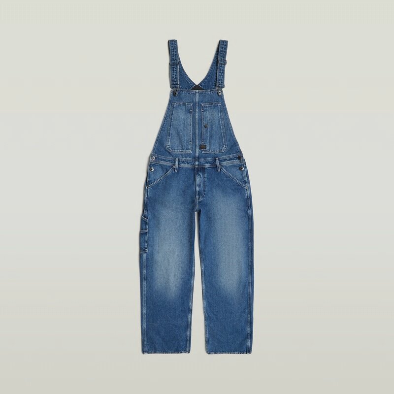 The Logger Dungaree features a zip and button closure, offering a loose fit with broad straps. Its mid-waist design ensures comfort and style.