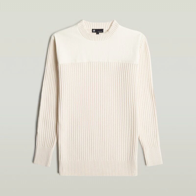 The Army Ribbed Knit features a classic ribbed design with a regular fit, round neck, and long sleeves.