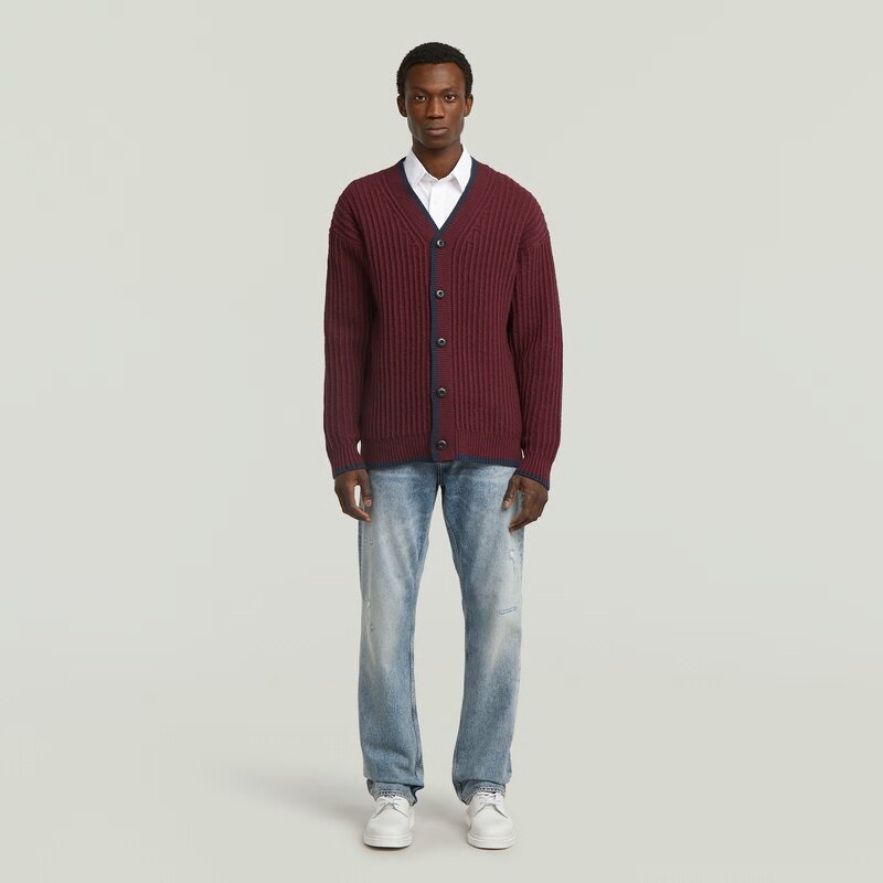 This Cardigan Knit features a loose fit and a V-neck design, offering a classic yet relaxed style.