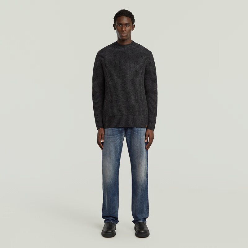 The Essential Ribbed Knit offers a regular fit with a classic round neck design.