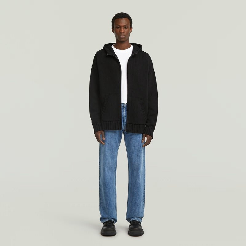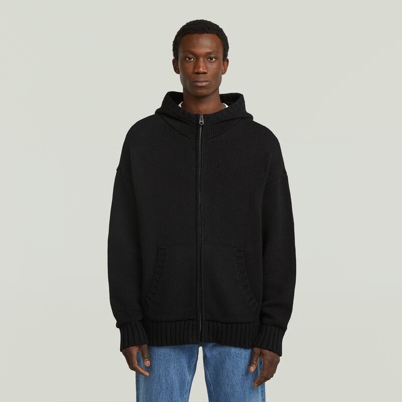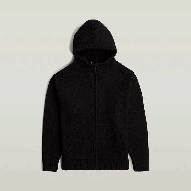 The Heavyweight Zip Hoodie Knit combines a loose fit with a hooded design, offering a versatile and stylish layering option.