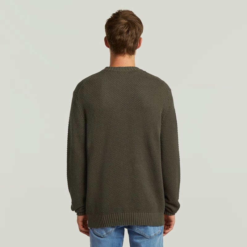 The Honey Comb Structure Knit features a textured design with a round neckline and long sleeves, offering a versatile and stylish look.