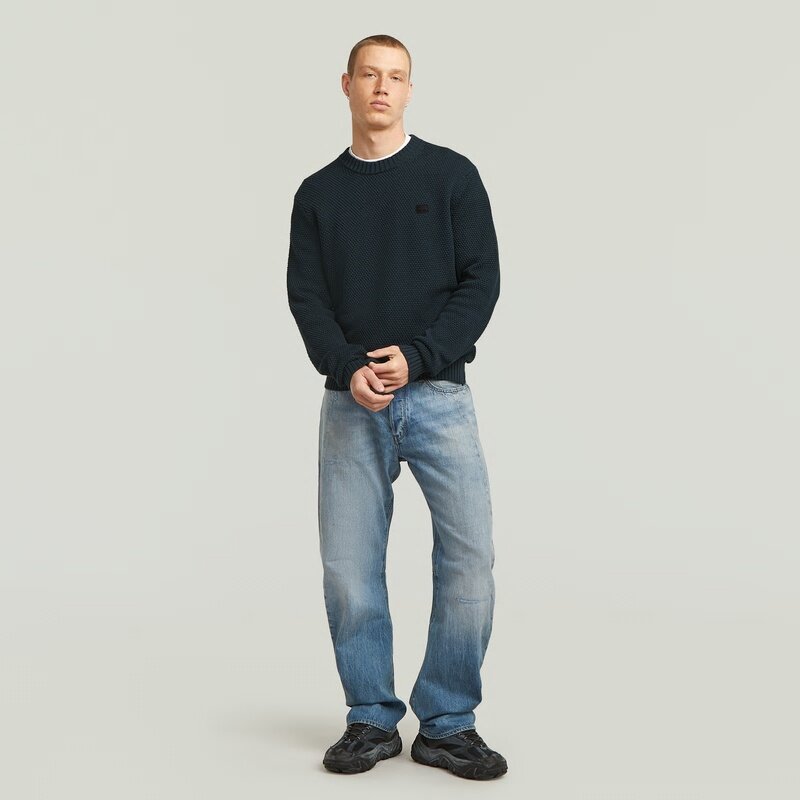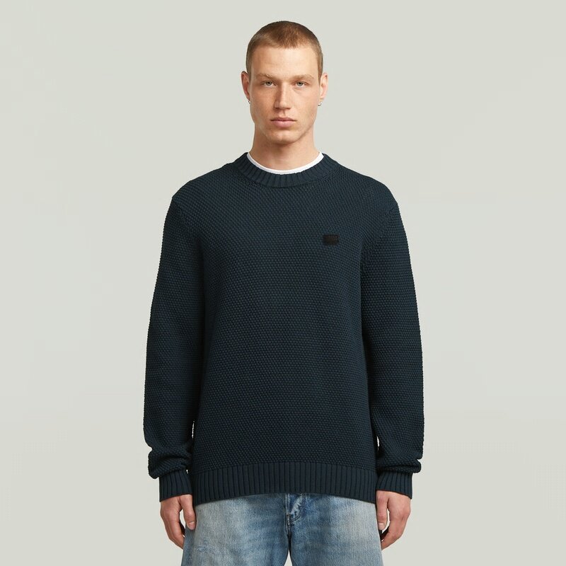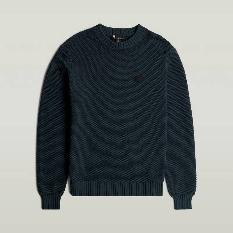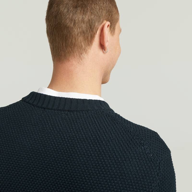The Honeycomb Structure Knit features a textured design with a round neckline and ribbed edges, offering a refined yet casual look.