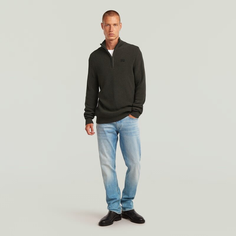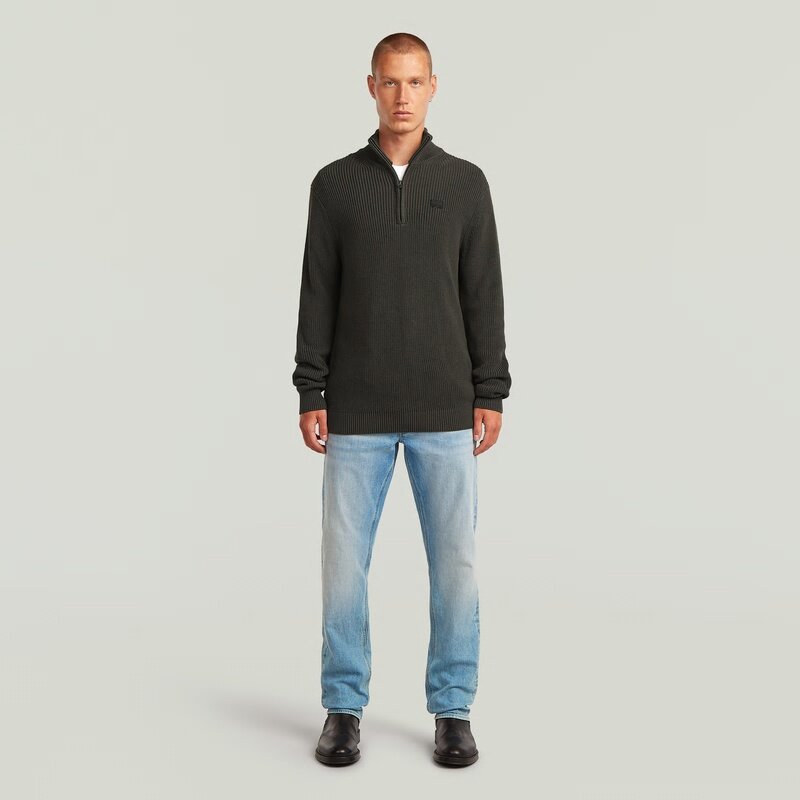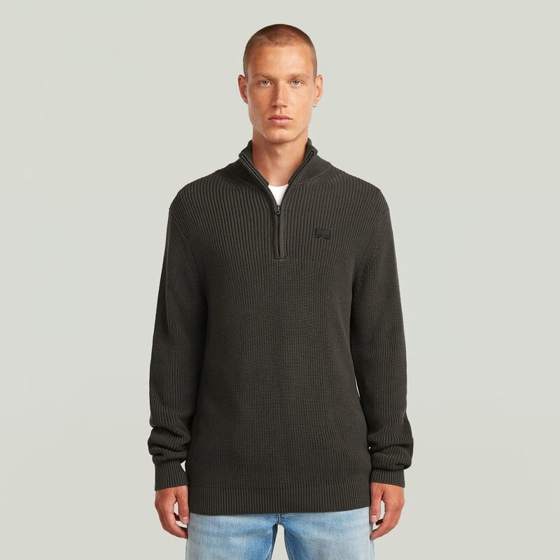 The Pullover Half Zip Knit combines a classic design with a practical half-zip closure for versatile wear. Its regular fit and long sleeves make it a timeless addition to any wardrobe.