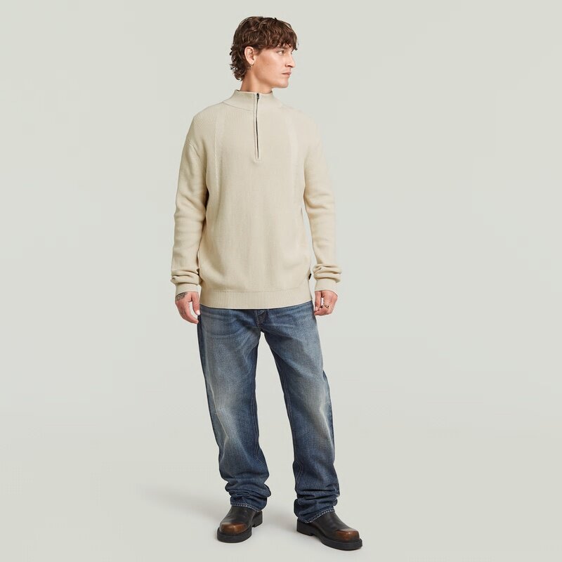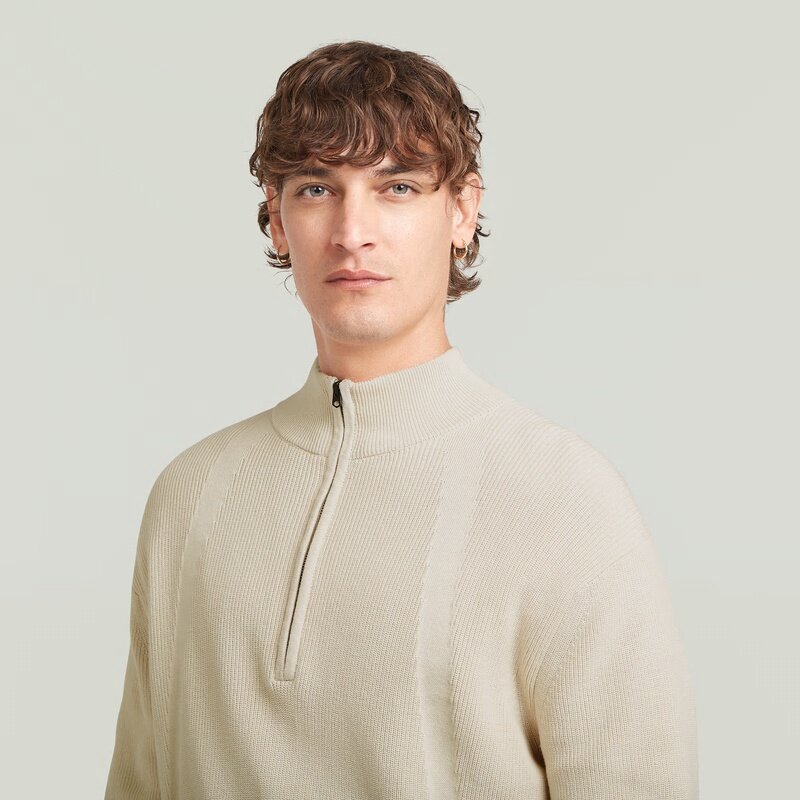 The Structure Half Zip Knit features a zip closure and a stand-up collar.