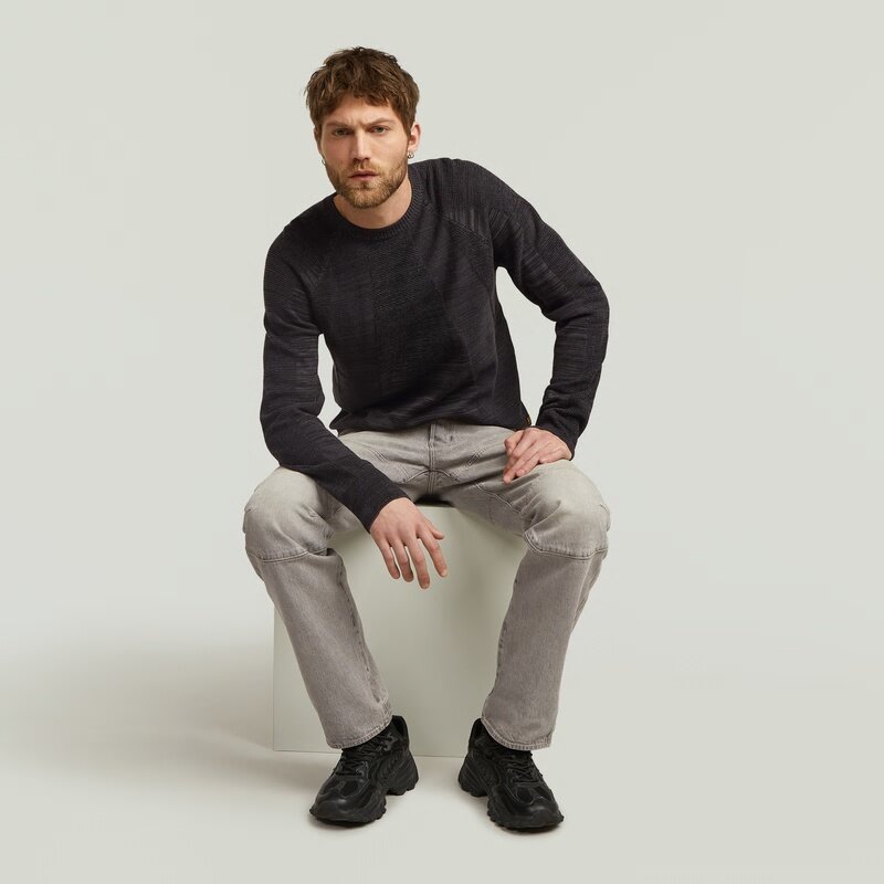 The 3D Biker Ribbed Knit pullover features a unique ribbed design.