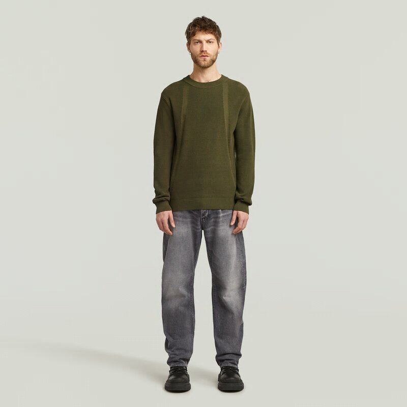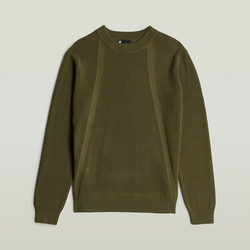 The Structure Knit features a round neck, showcasing a unique ribbed knit construction.