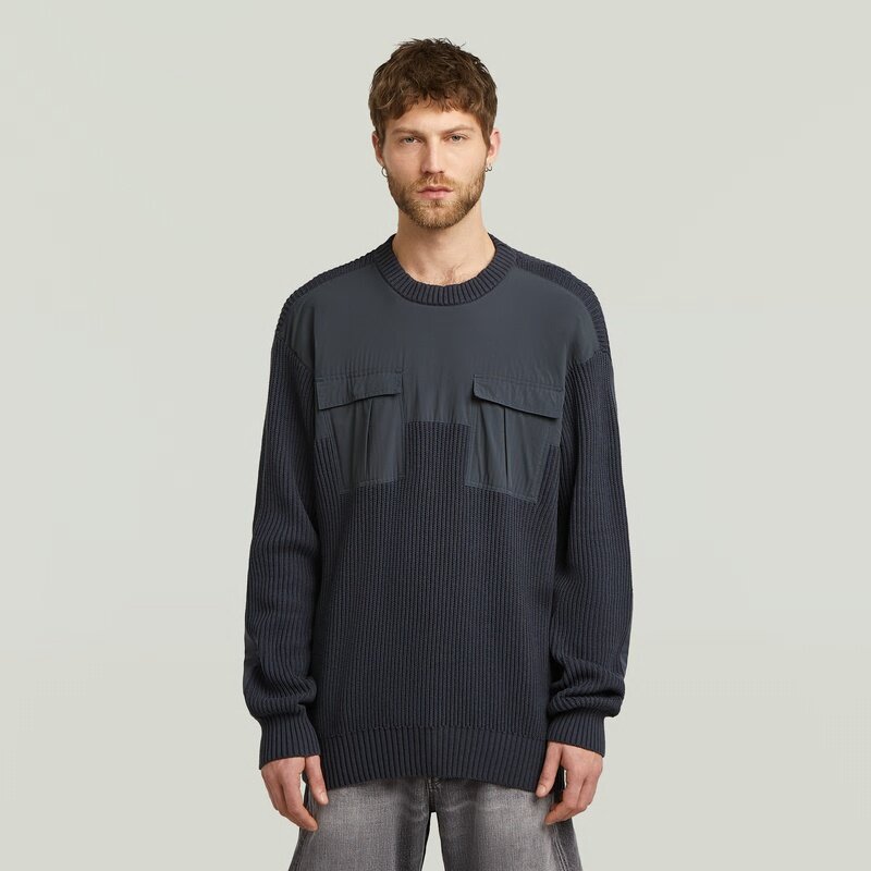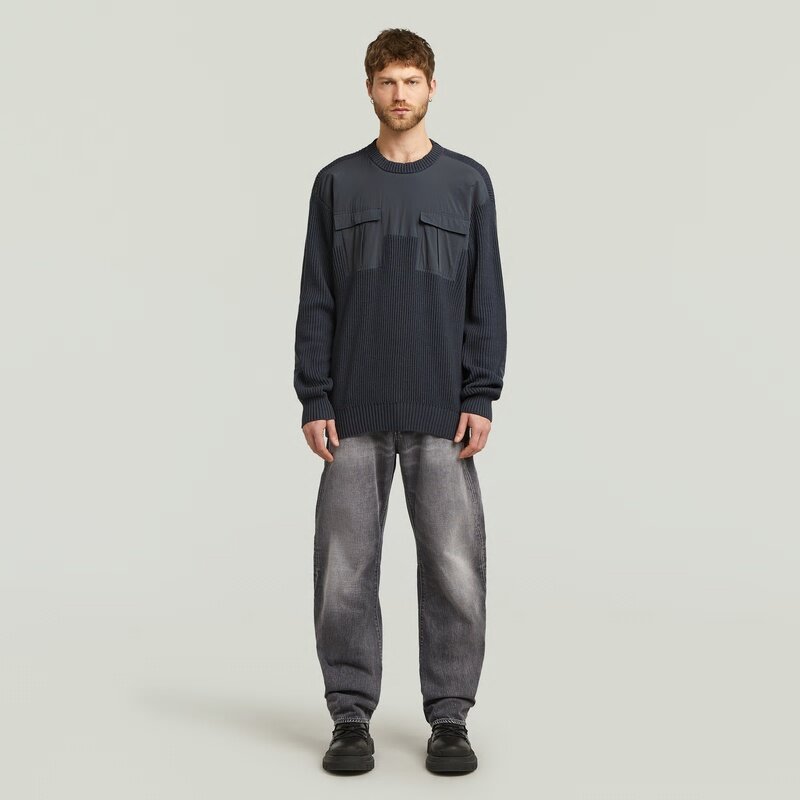 The Woven Mix Knit offers a loose fit with a round neck design, perfect for a relaxed look.