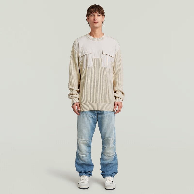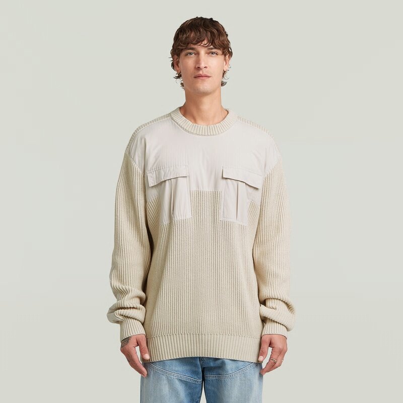 The Woven Mix Knit offers a loose fit with a round neck design, perfect for a relaxed look.