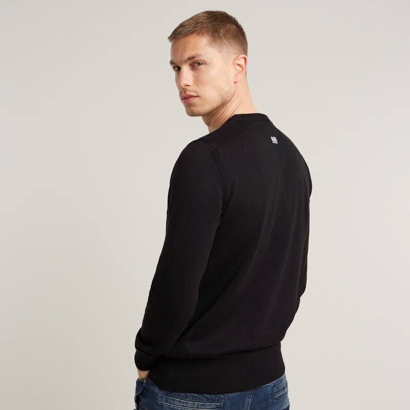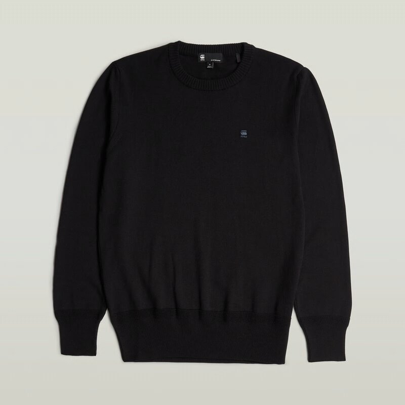 Knitted sweater Core features a straight fit with a ribbed, round neckline. Also the cuffs and waist are created out of a ribbed knit. The G-Star RAW embroidery at the chest signs it off.