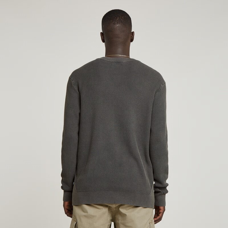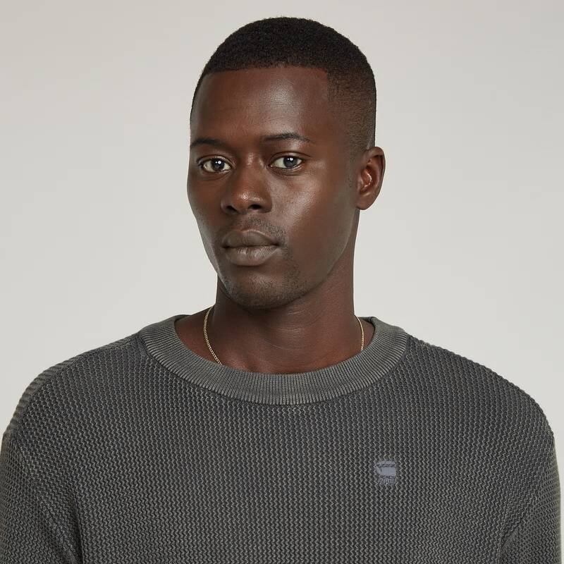Knitted sweater Serrated is designed in a zigzag knit texture and offers a round neck. The ribbed edge at the sleeves and waist show an angled design at the sides. The G-STAR embroidery at the chest signs it off.