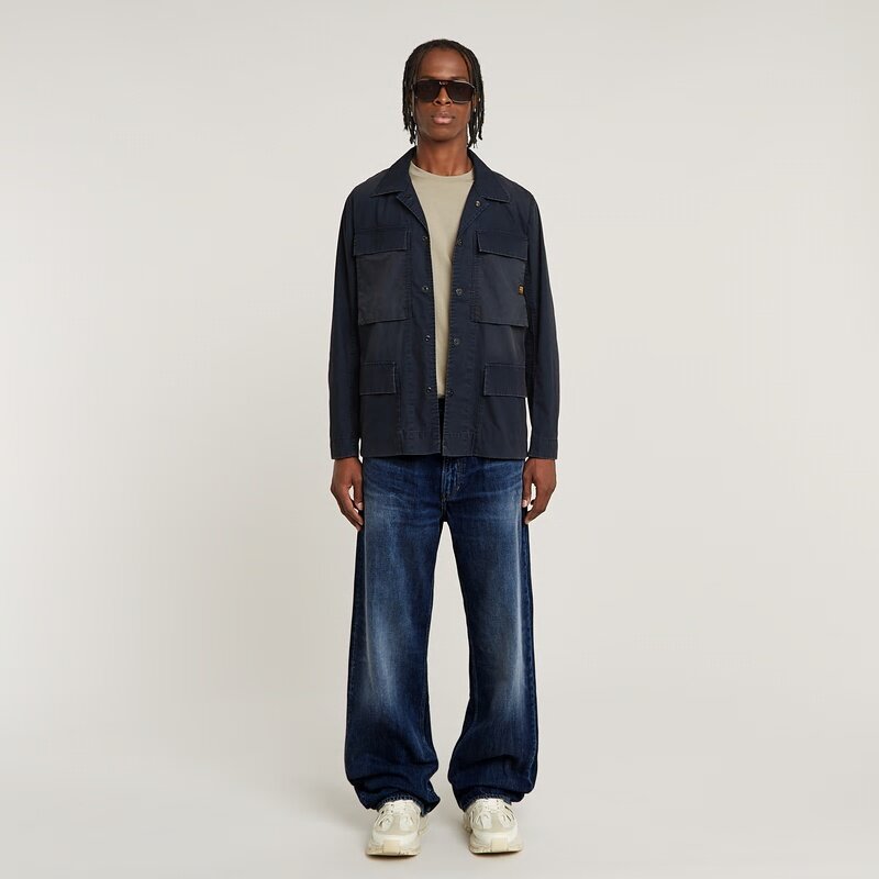 Overshirt 4-Pockets is designed in a slim fit and offers slits at the back. Flap pockets are created at the chest and waist. Close the snap button at the sleeve to reduce the sleeve width.