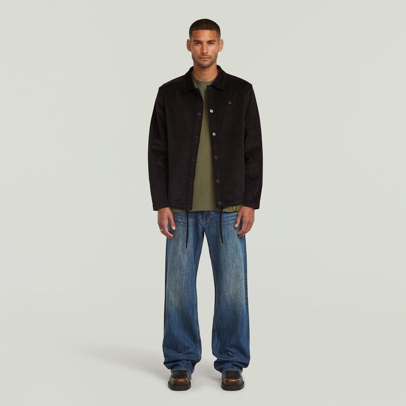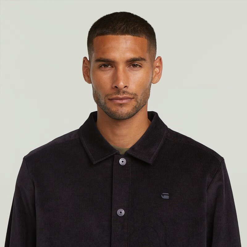 The Cord Coach Sweater Jacket combines a classic overshirt design with a button closure and a shirt collar for a refined look.