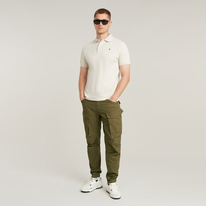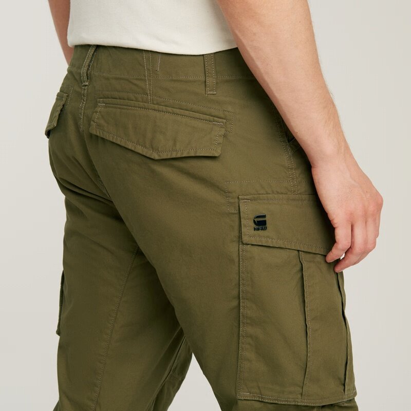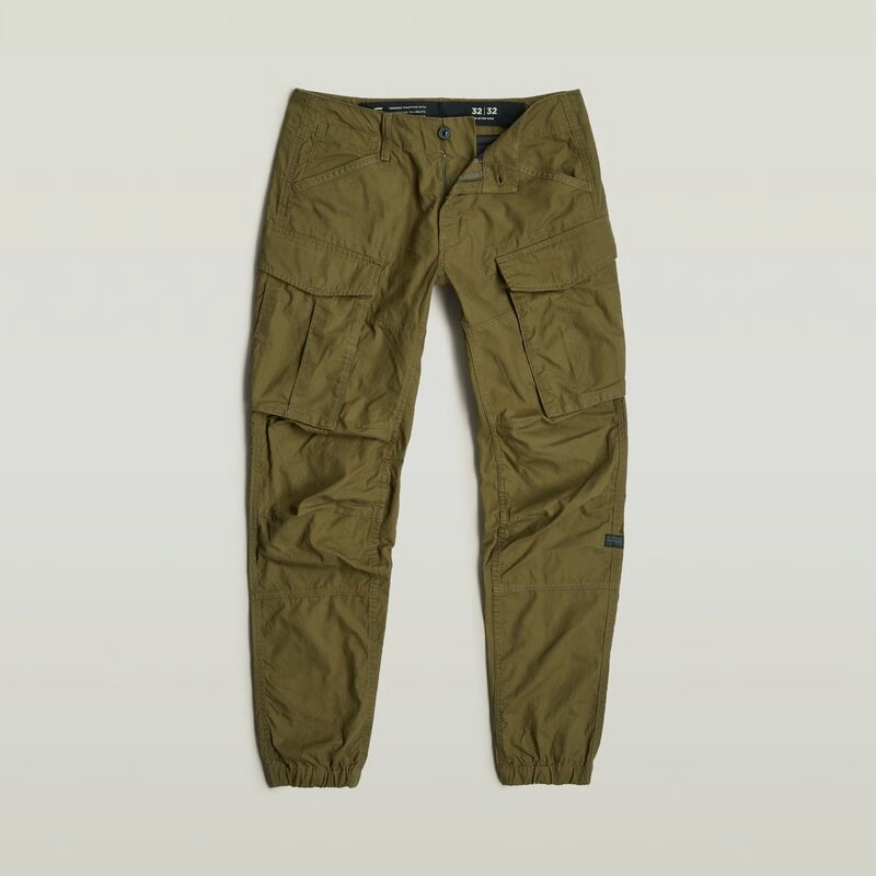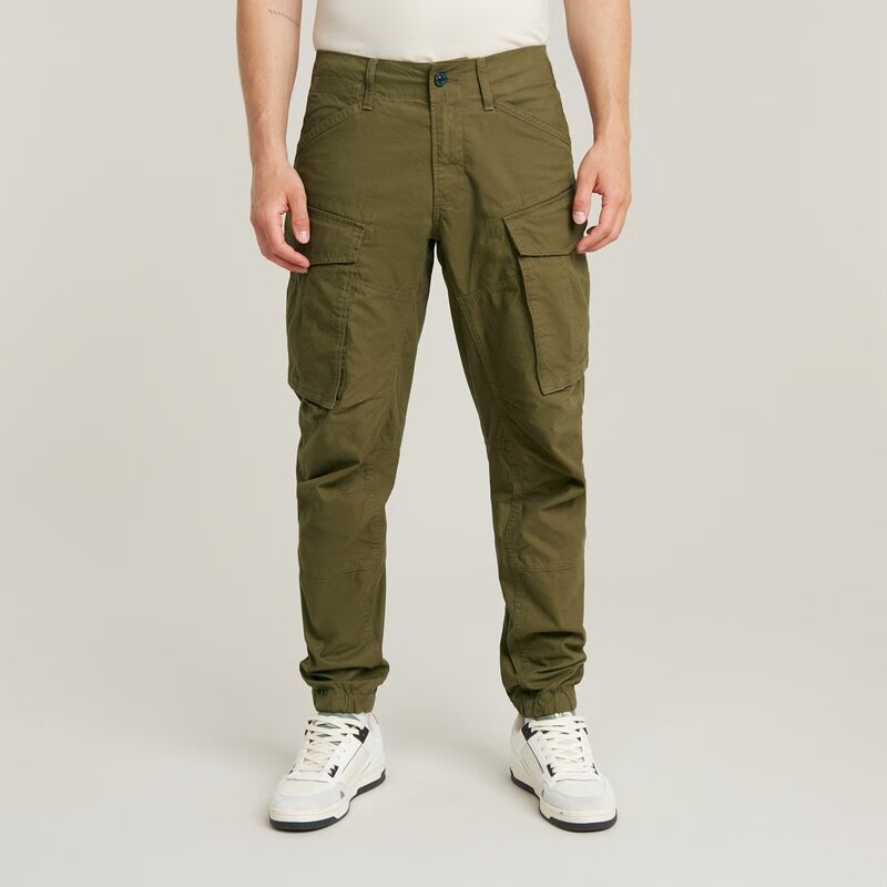 Cargo pants 3D Regular Tapered Cuffed show 3D thigh pockets, where additional flap pockets are caught behind. Also at the knee a 3D-effect is created by use of pleats. The legs offer an elastic finish, creating a tapered effect.