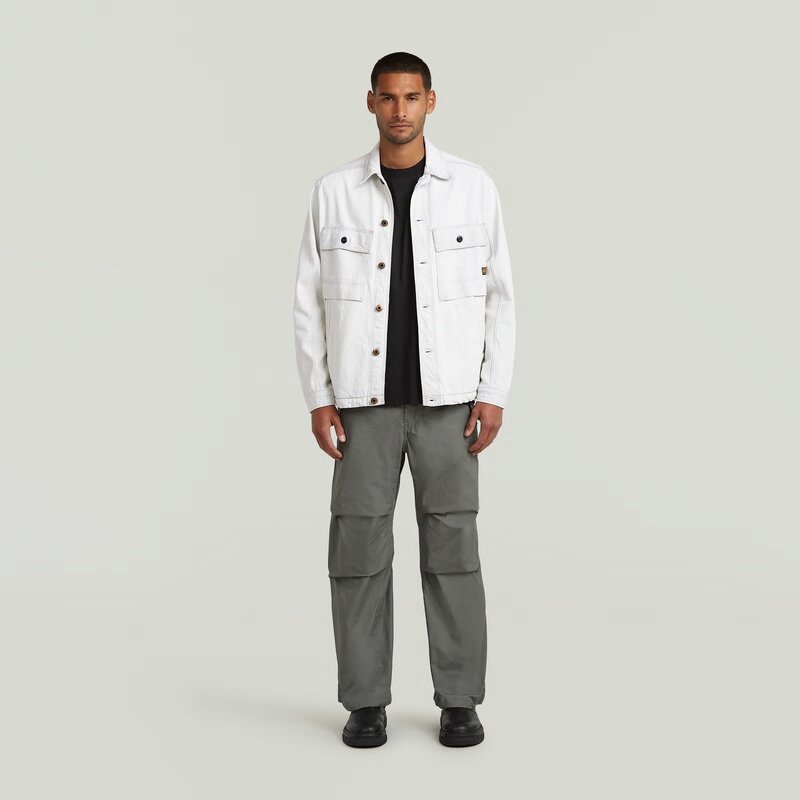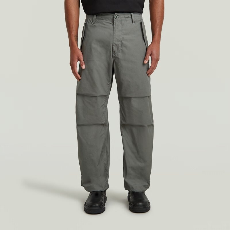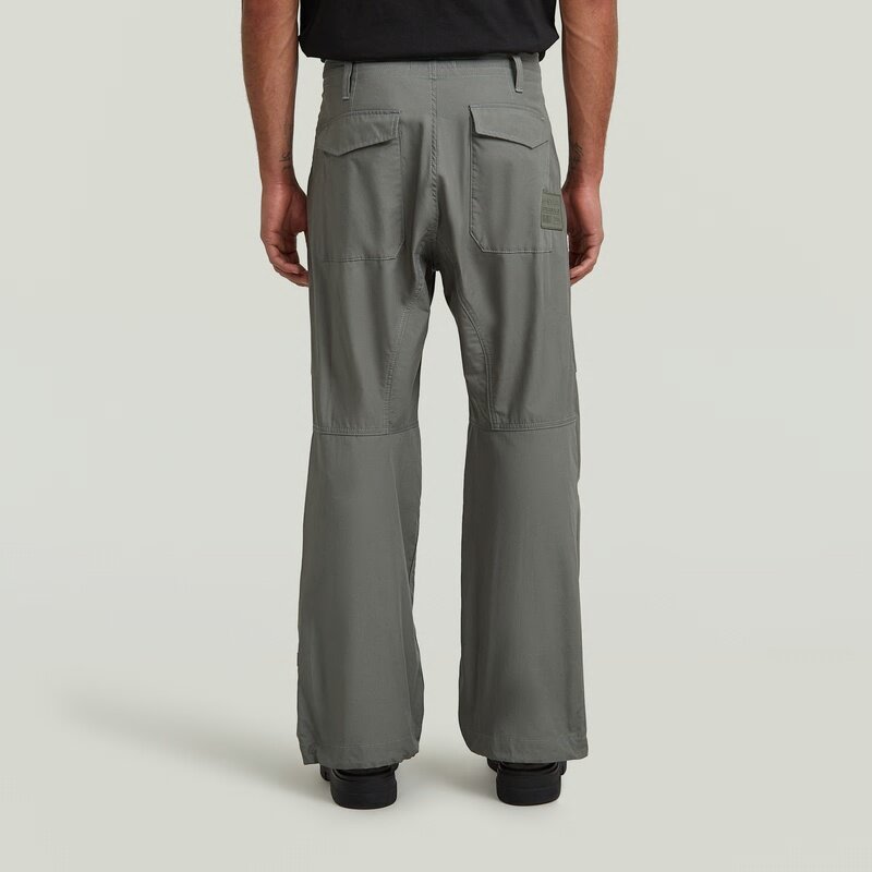 Cargo pants Balloon Shell offer a loose fit with an integrated drawcord. Flap pockets with a hidden snap button are added to the waist. Pleats create a 3D-effect around the knees. Also the back shows flap pockets. The tape at the hem allows for even more volume and a tapered effect.
