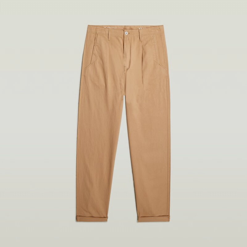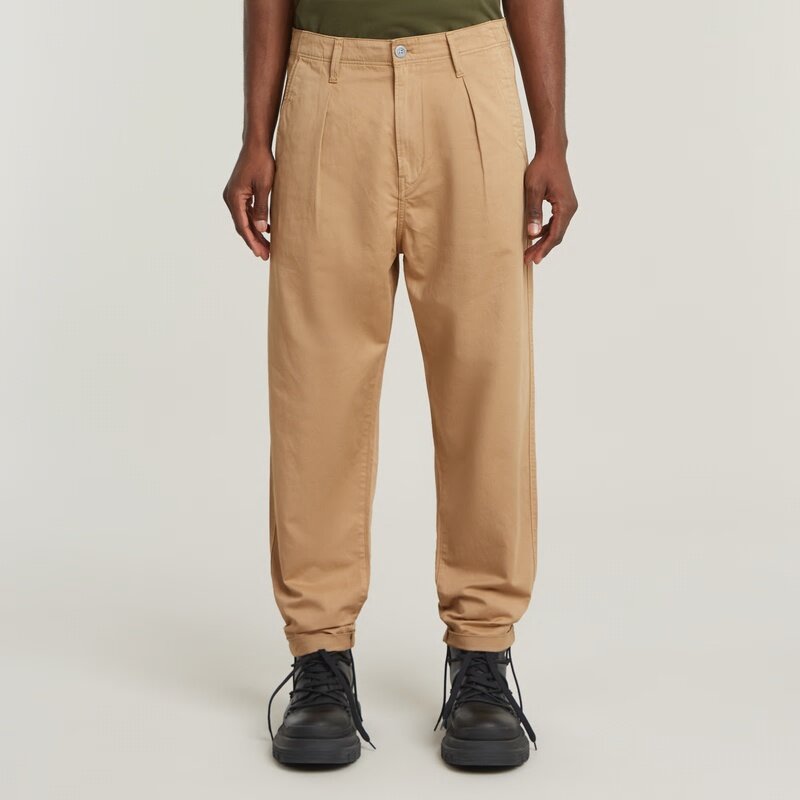 Pleated Chino Relaxed offers pleats at the front to enhance the relaxed fit. The coin pocket is integrated in the pocket insert. The back pockets are finished with a button closure.