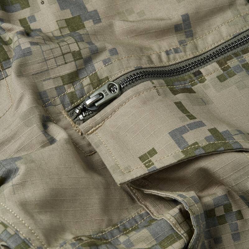 The Rovic Zip 3D pants show cargo thigh pockets with an additional zipper pocket caught behind one of them. The integrated tape at the lower leg allows for a tighter fit around the ankles.
