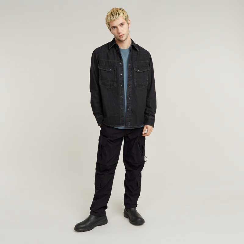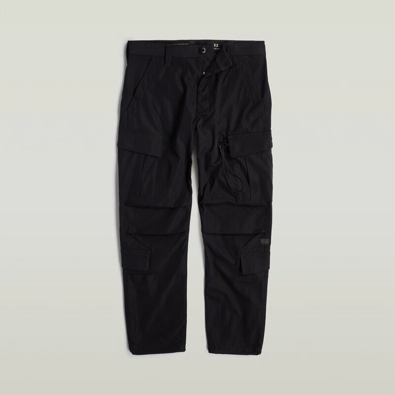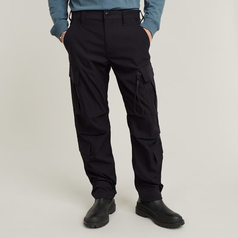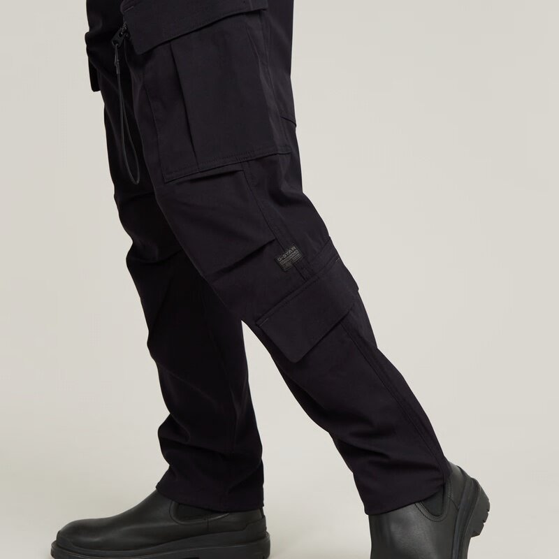 Cargo pants P-3 show 3D-pockets at the front with an additional zipper inside one of them. At the calf, flap pockets with Velcro are set. These trainers offer a relaxed tapered fit. The elastic cord at the hem allows for a tighter cuff and more volume. Back pockets offer a concealed entry with a snap button.
