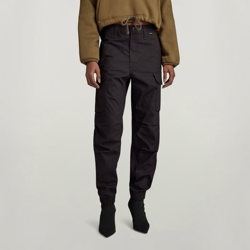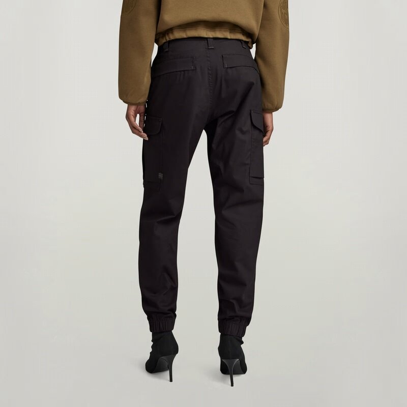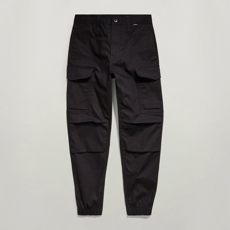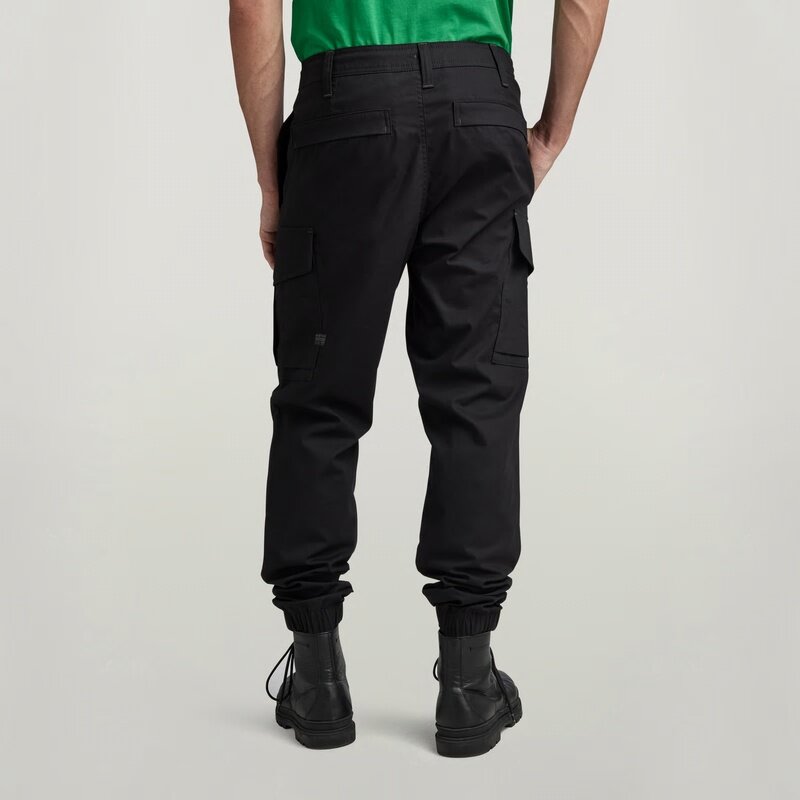 The design of cargo pants Combat show 3D cargo pockets at the front legs. Offering a relaxed tapered fit, where the elasticated cuffs make it even more comfortable to wear. These unisex cargo pants show back pockets with a concealed entry. The zipper fly is combined with a woven tape inside to allow for a personalized fit.