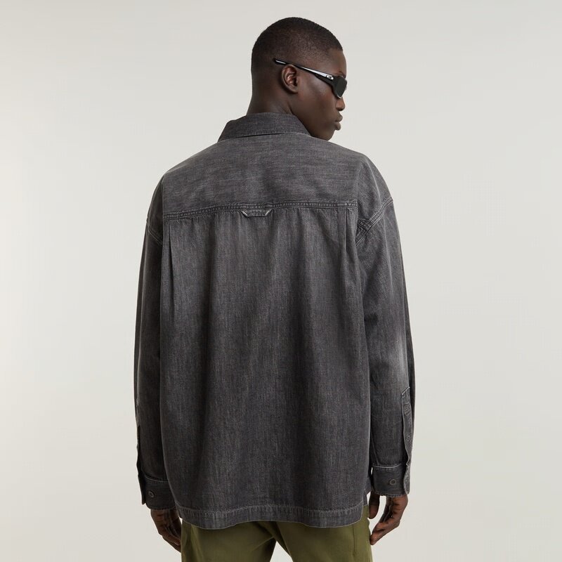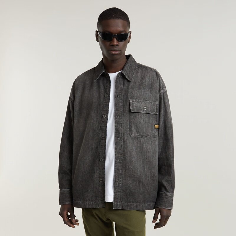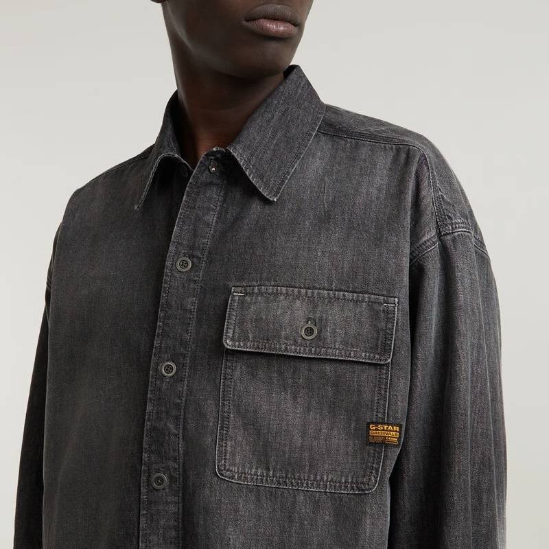 Cotton shirt Flap Pocket offers a comfortable wear due to the oversized fit. A squared, boxy silhouette is created. Below the shoulder panel a volume pleat is set. The chest pocket completes it.