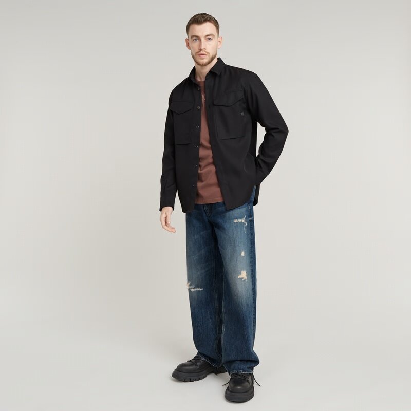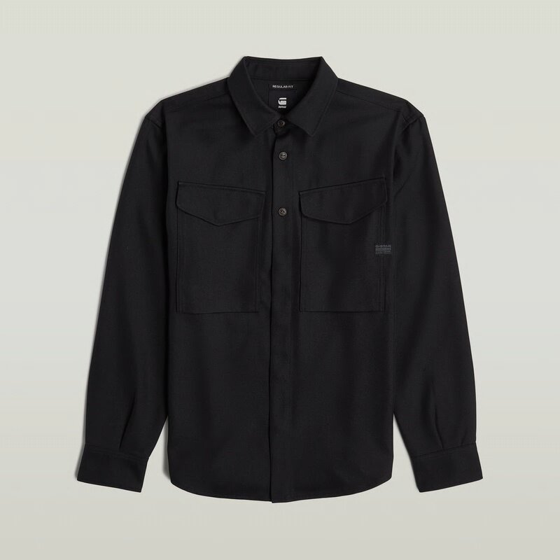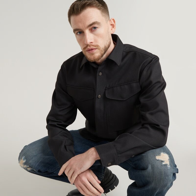 Shirt Cargo Pocket is designed in a straight fit and offers a curved hem. The upper section of the front closure shows buttons, while the bottom section offers hidden snap buttons. Deep flap pockets at the chest are finished with a hidden snap button as well. The shoulder panel has a volume detail underneath.