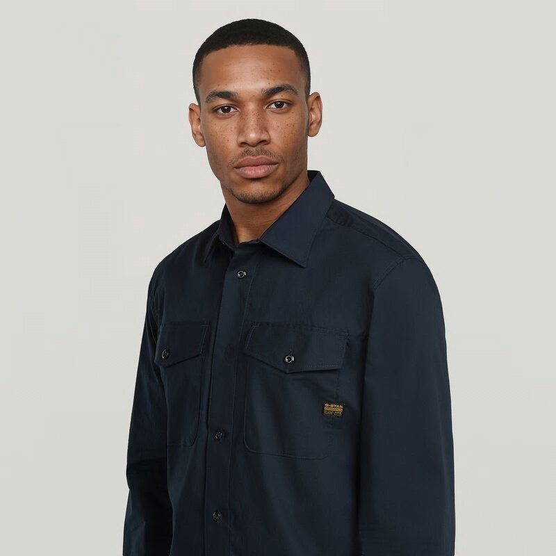 Shirt Marine is cut in a slim fit and offers a curved hem. Flap pockets at the chest complete it.