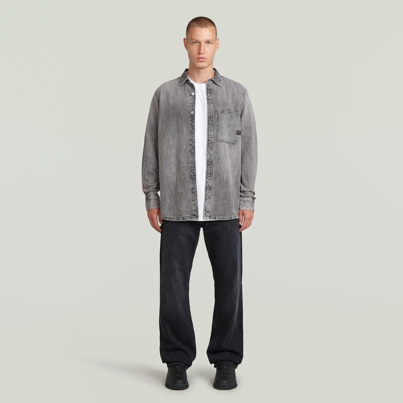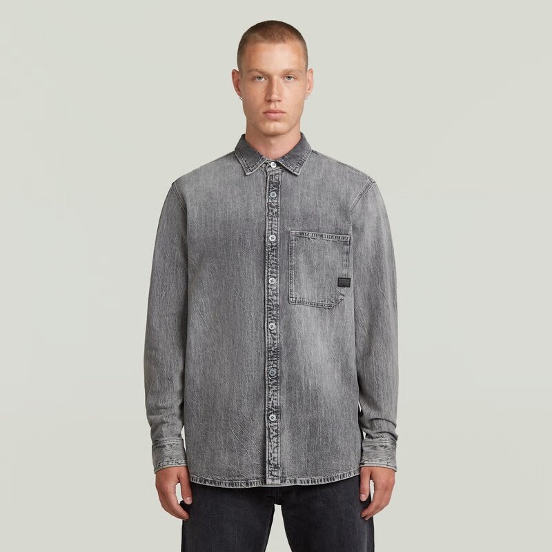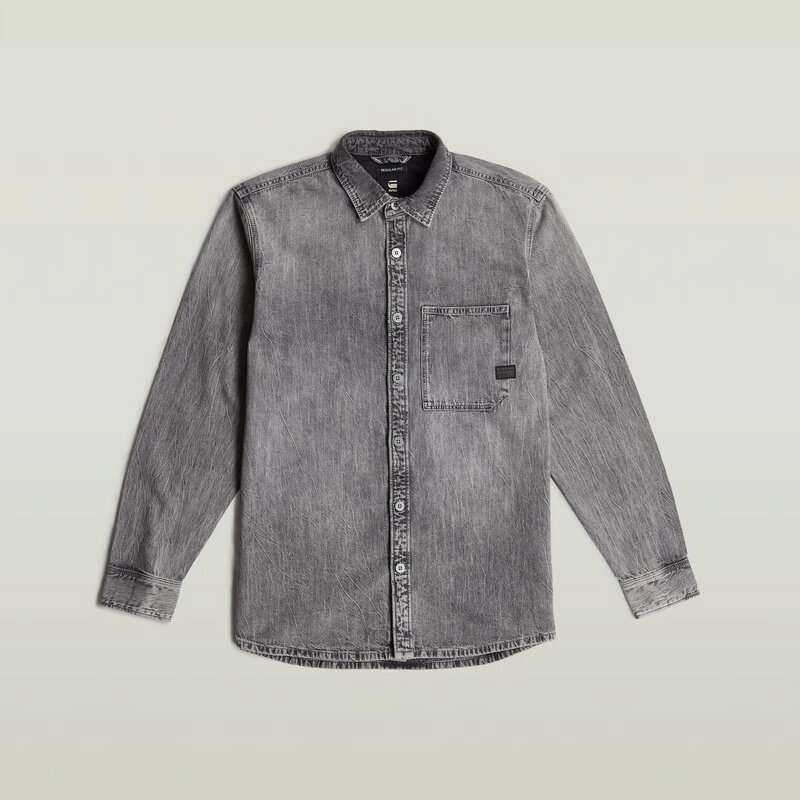 The Regular One Pocket Shirt features a classic button closure and a shirt collar, offering a timeless look.