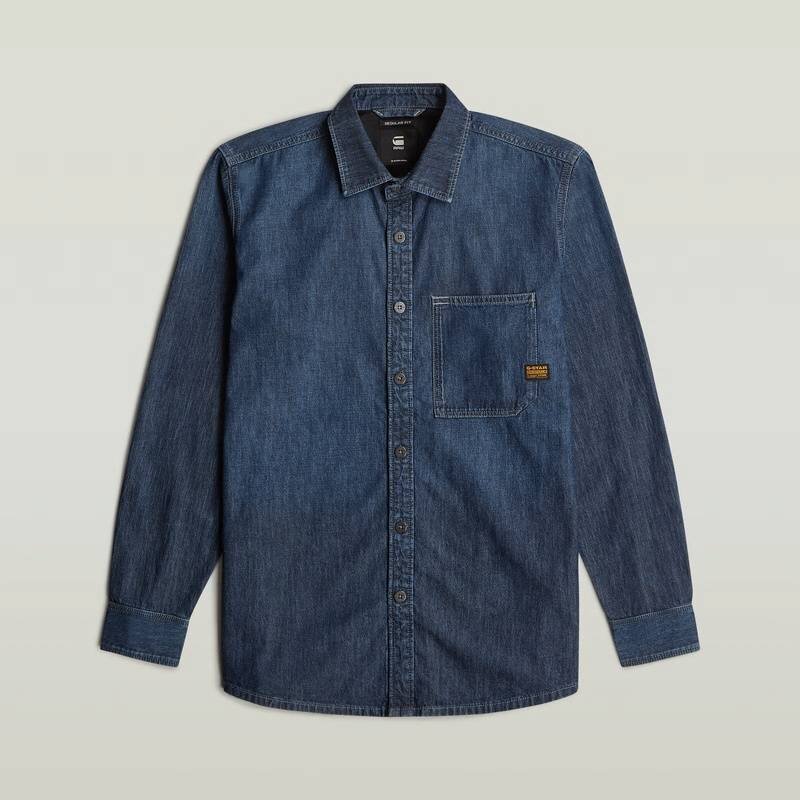 The Regular 1-Pocket Shirt features a classic button closure and a shirt collar, offering a timeless look.
