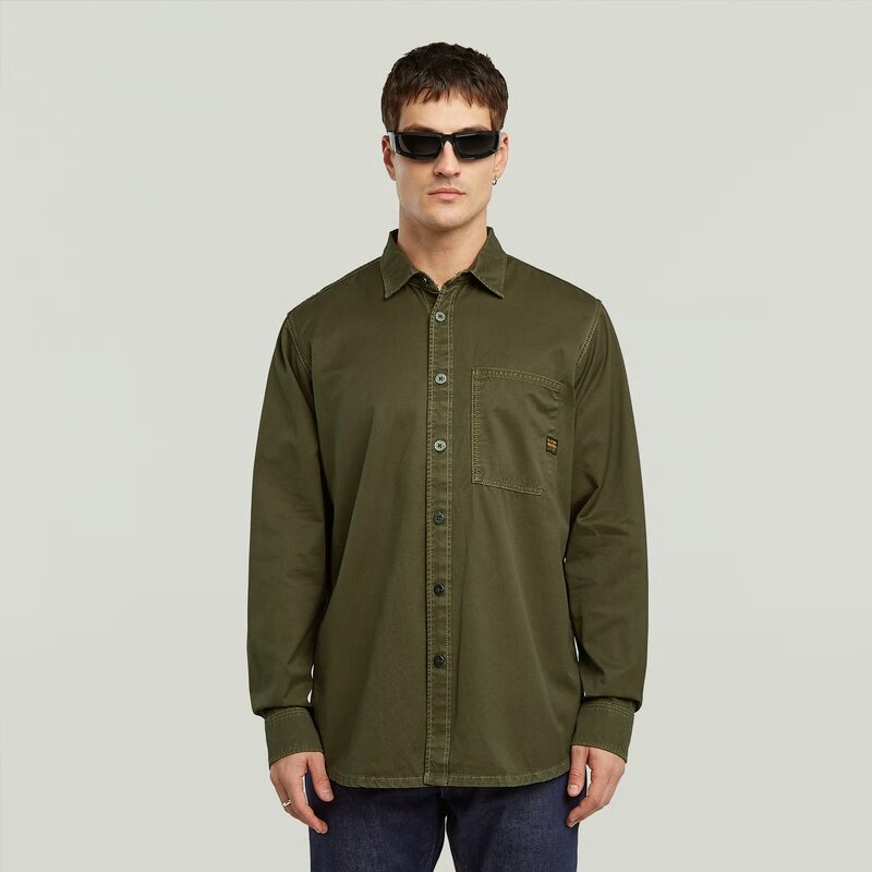 The Regular One Pocket Shirt features a classic button closure and a shirt collar, offering a timeless look.