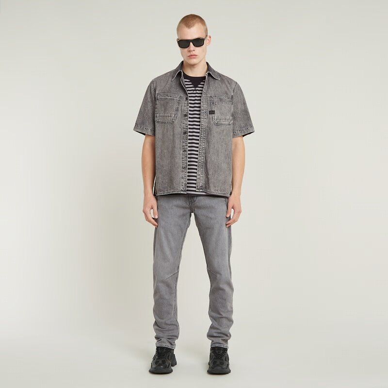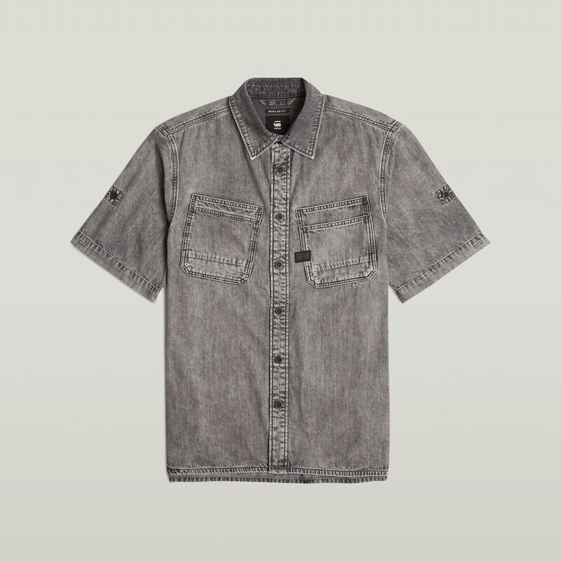 Denim shirt Slanted Double Pocket is created in a straight fit offering short sleeves. Use the button to create a shorter sleeve. The chest pockets are placed in an angled position. One of these offers an additional pocket within.