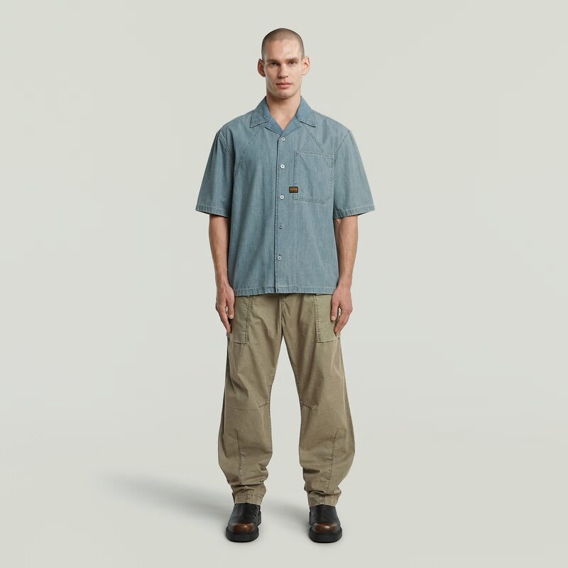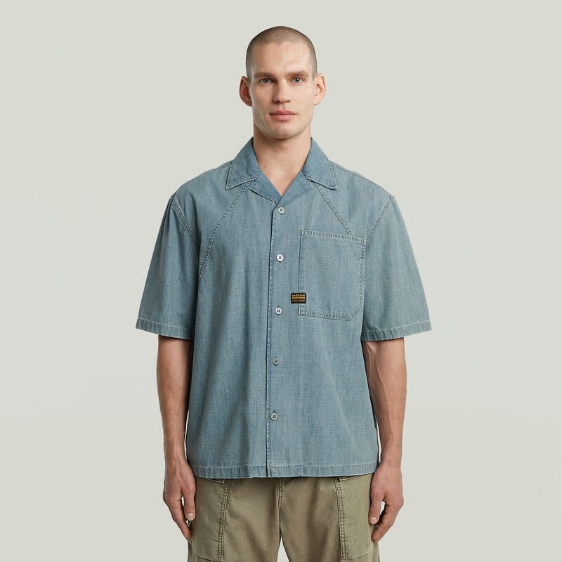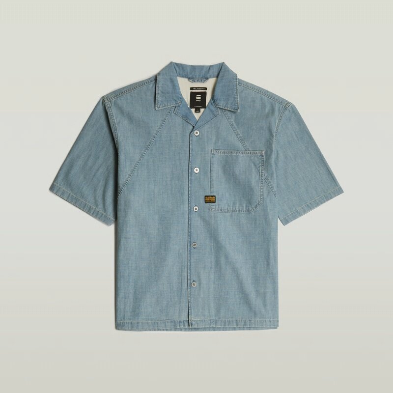 The Track Relaxed Shirt features a relaxed fit with side slits. It includes a shirt collar and button closure.