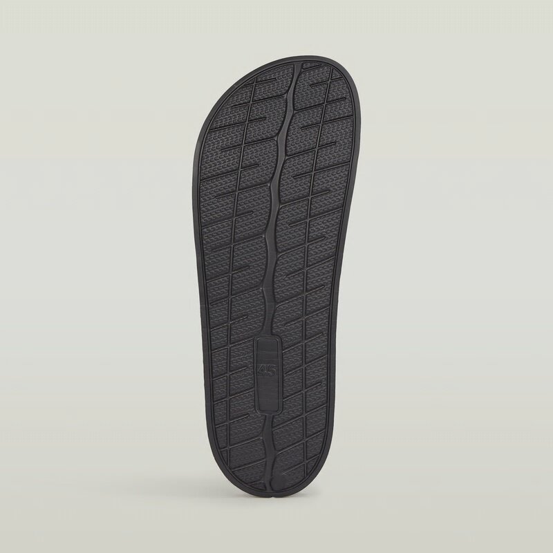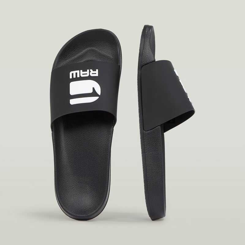 These lightweight Cart III slides show a raised RAW design at the strap. The ergonomic footbed allows for a relaxed feel.